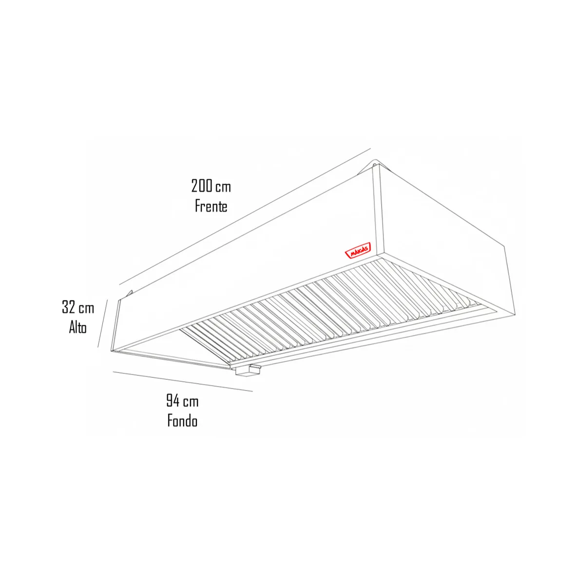 Campana Mural con Filtro 200x94x32cm – Maigas