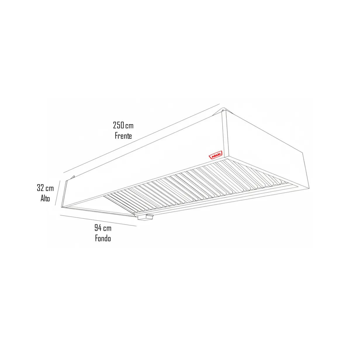 | Cobertura de 2.5 Metros: Ideal para abarcar una línea completa de cocción (ejemplo: anafe, freidora, plancha y parrilla) de forma continua, evitando que los humos se dispersen por el local. |