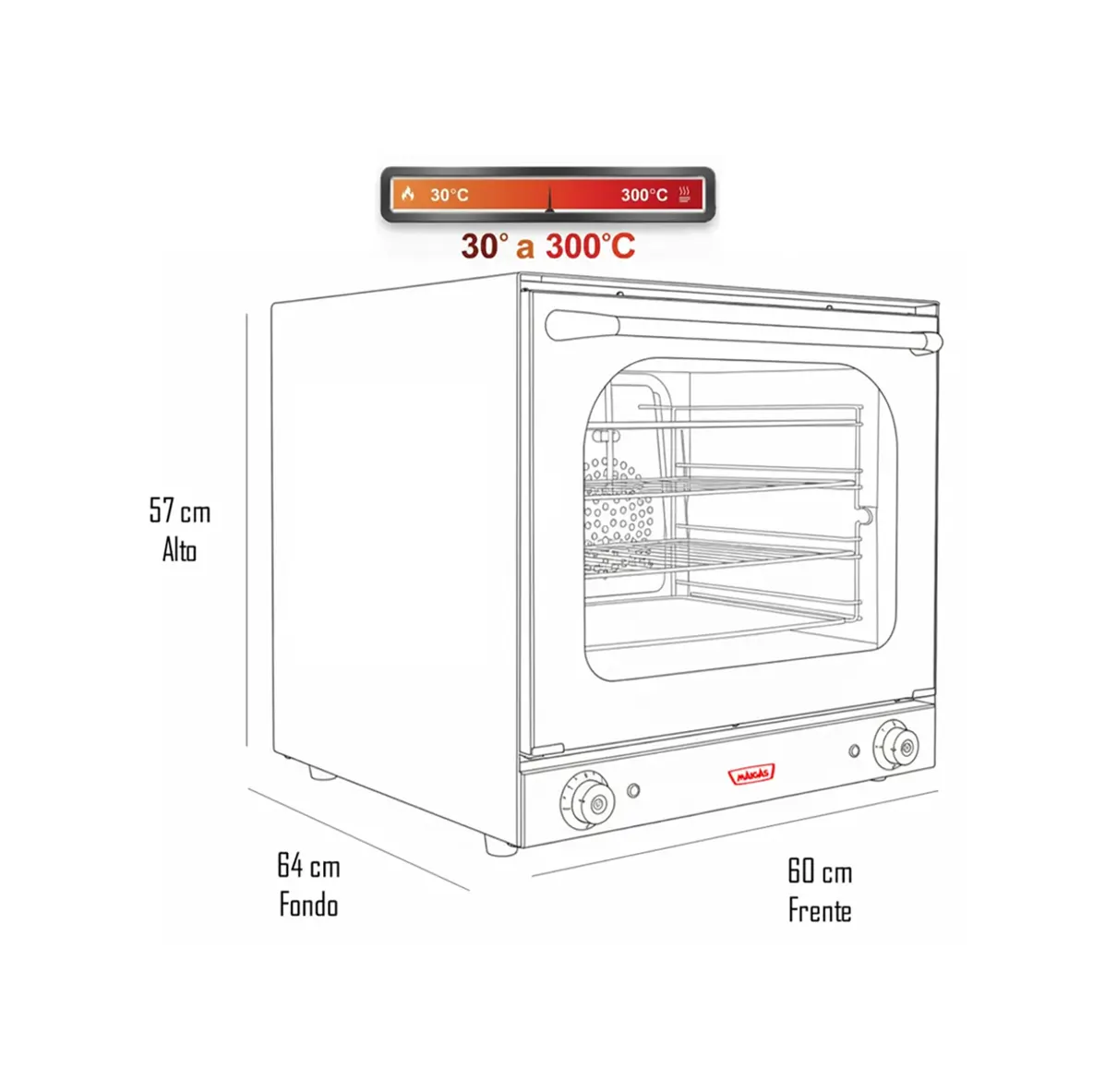 El Horno Convector Maigas de 4 Bandejas es el aliado perfecto para maximizar la producción en espacios optimizados. Su sistema de doble turbina garantiza que el aire caliente circule de manera constante por toda la cámara, logrando que cada una de las 4 bandejas reciba la misma intensidad de calor.