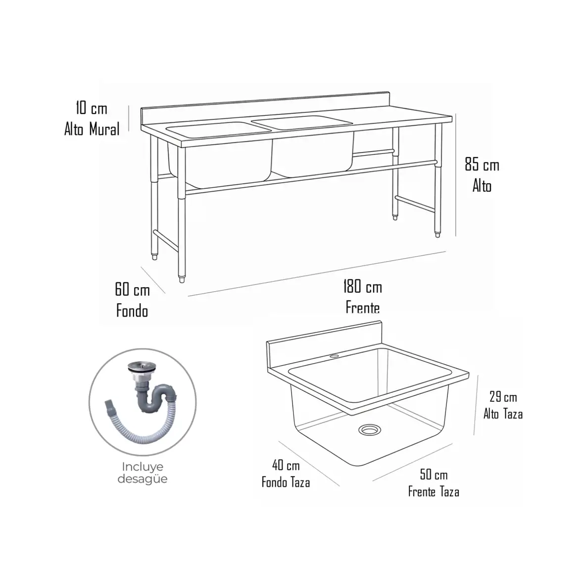 | Construcción en Acero Inoxidable: Fabricado para resistir el uso rudo, la corrosión y el contacto constante con químicos, manteniendo una superficie no porosa que no acumula bacterias. |