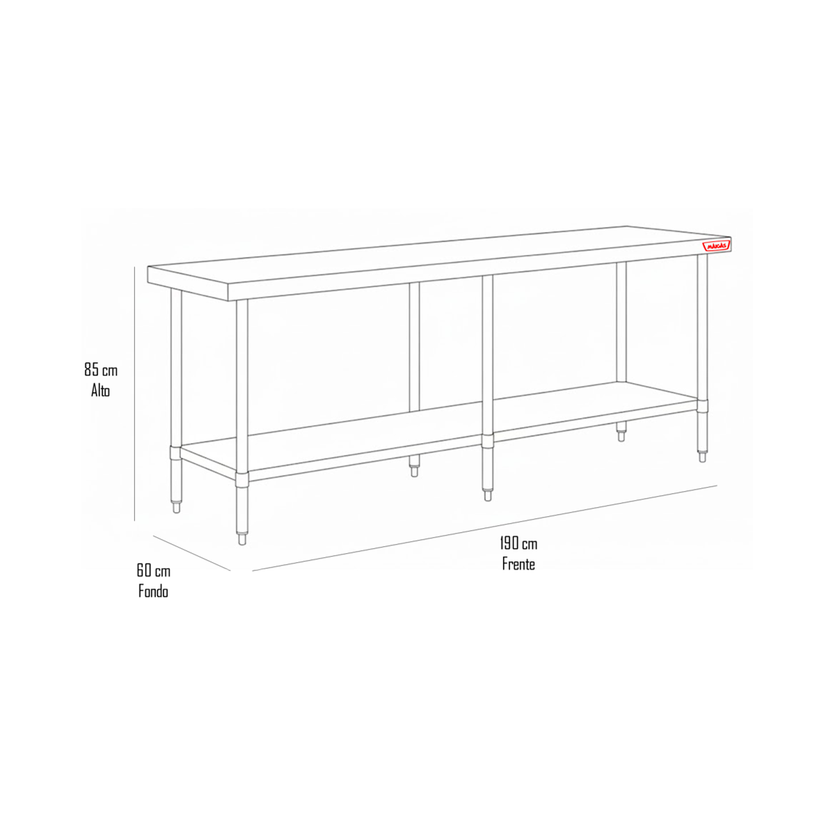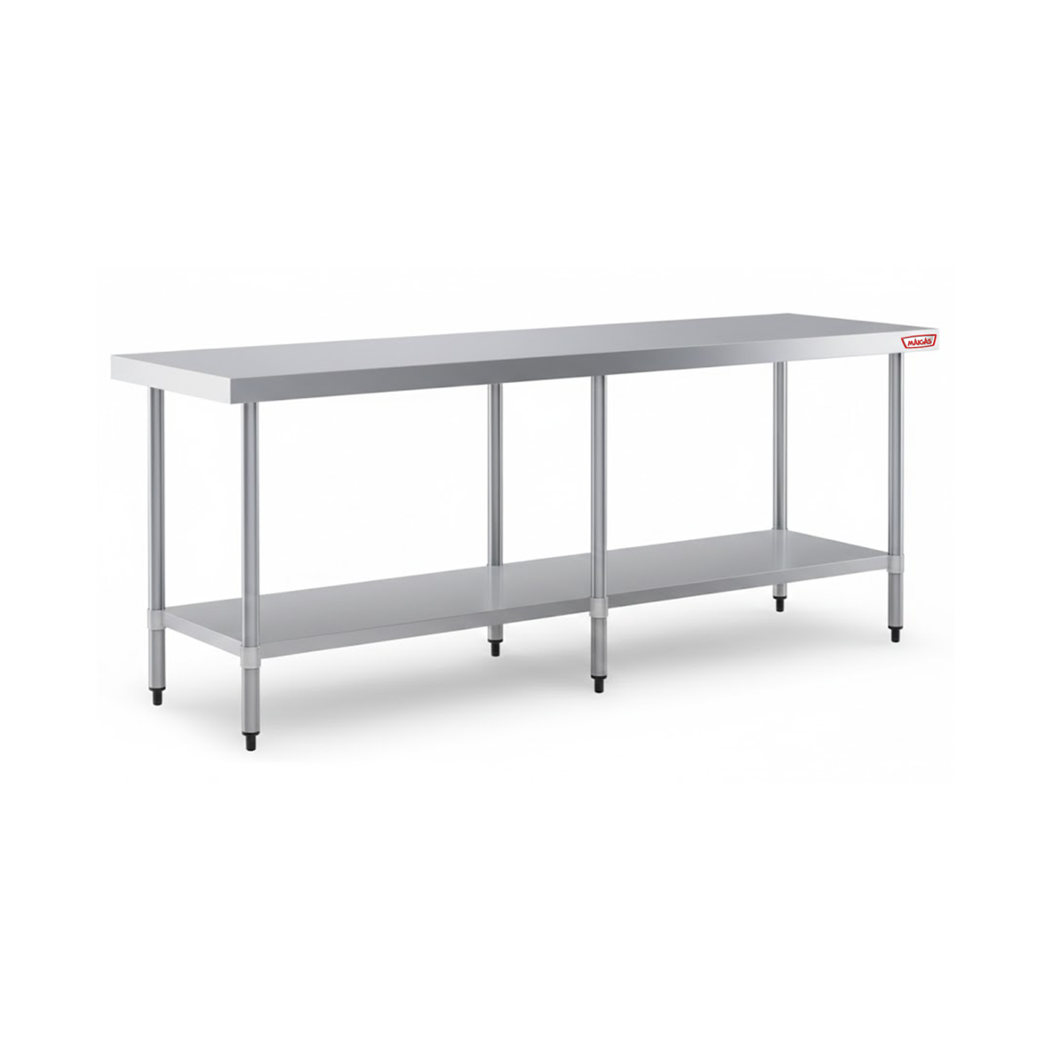 El Mesón de Trabajo Central Maigas de 1.9 metros es la estación de trabajo definitiva para quienes operan a gran escala. Con casi dos metros de longitud, este mesón 100% de acero inoxidable permite que hasta 3 o 4 personas trabajen de forma simultánea cómodamente.