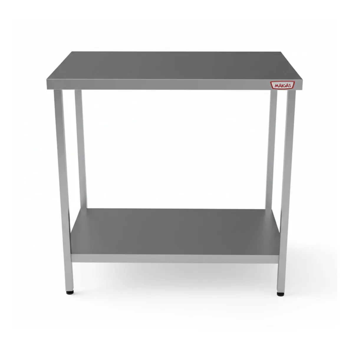 El Mesón de Trabajo Central Maigas de 90 cm es la solución ideal para estaciones de preparación donde cada centímetro cuenta. A diferencia de los mesones estándar, este modelo cuenta con cubierta y subcubierta de acero inoxidable, reforzadas con una viga interior que evita deformaciones por peso o calor.