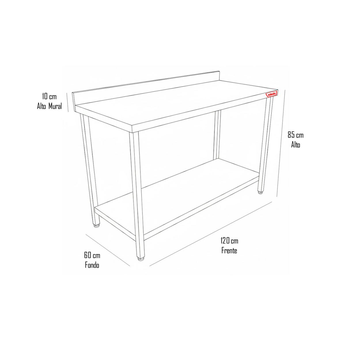 | Doble Nivel de Almacenamiento: Incluye una subcubierta (repisa inferior) de acero inoxidable, permitiendo aprovechar el espacio bajo el área de trabajo para organizar ollas, contenedores de ingredientes o herramientas, manteniendo el orden en todo momento. |
