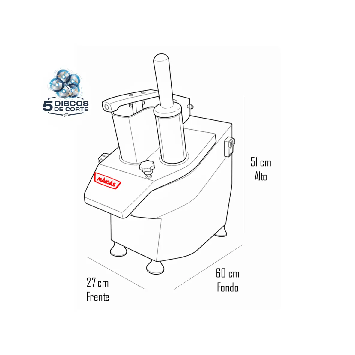 Versatilidad y Rapidez Industrial: Procesador de Vegetales con 5 Discos – Maigas.