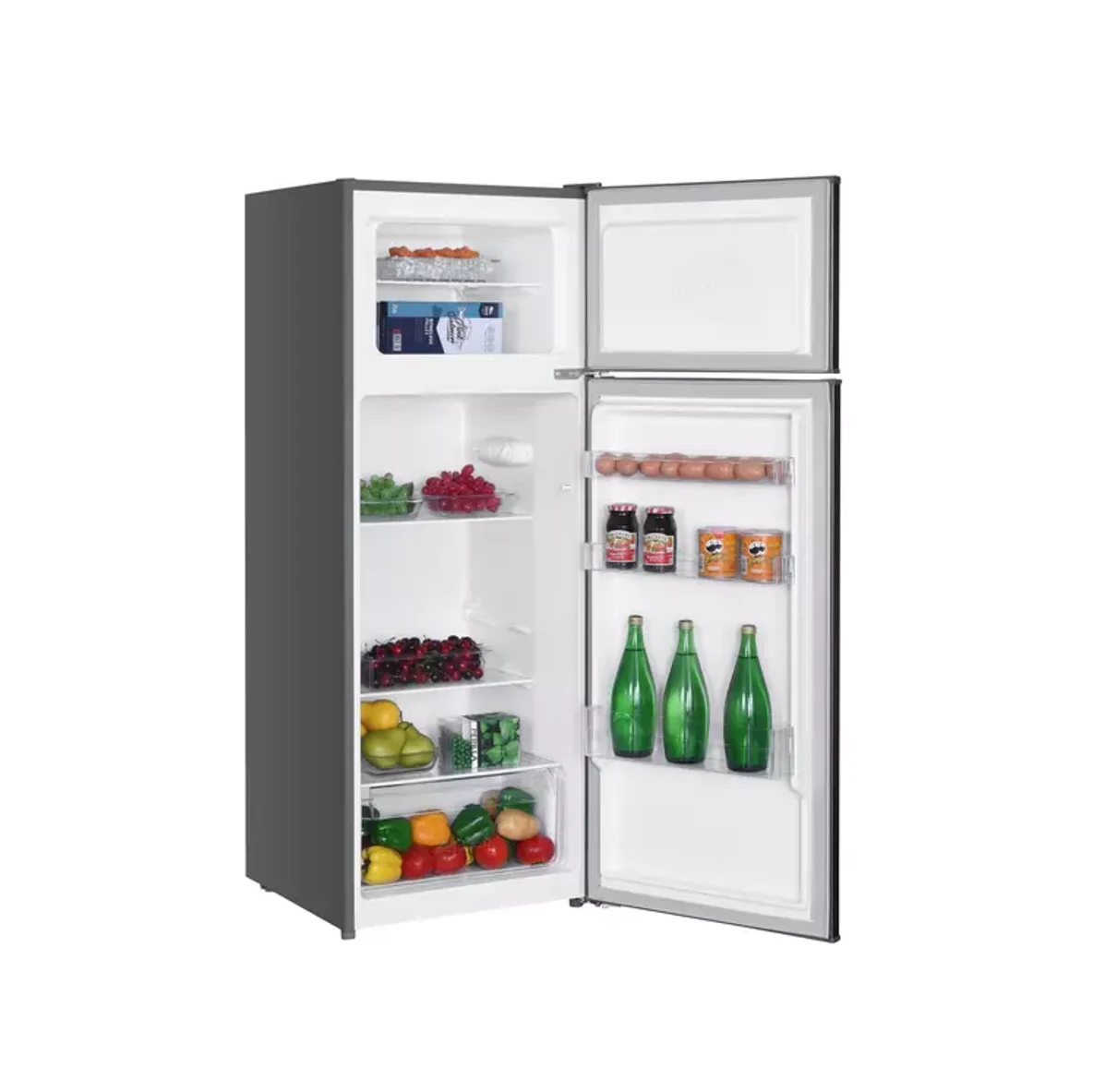 | Gran Capacidad en Formato Compacto: Con 205 litros totales, ofrece un amplio espacio de refrigeración (168 L) y un congelador eficiente, ideal para familias pequeñas o espacios de kitchenette. |