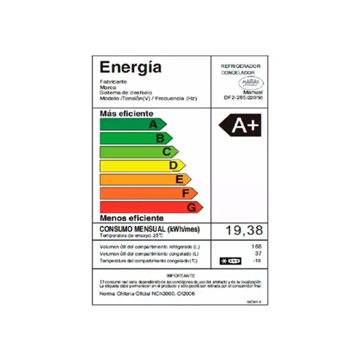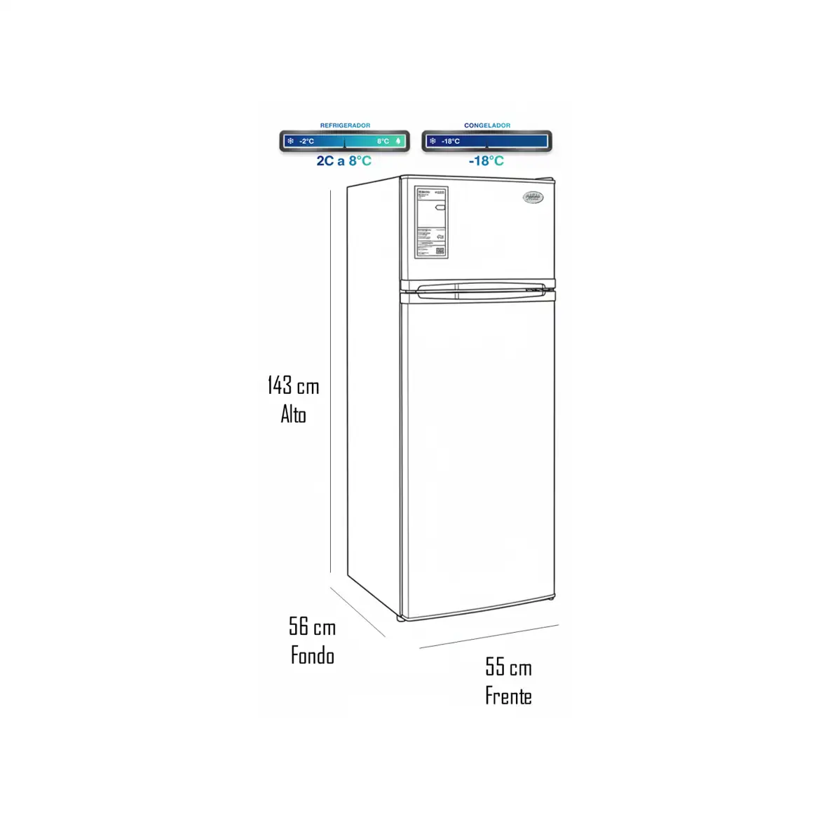 Rango de Temperatura: 2°C a 8°C (Refrig.) / -18°C (Congel.)