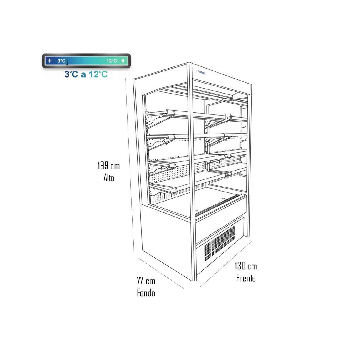 | Sistema de Frío Forzado Eficiente: El aire circula constantemente creando una cortina de frío que protege los alimentos, manteniendo la temperatura ideal incluso en ambientes de alto tráfico. |