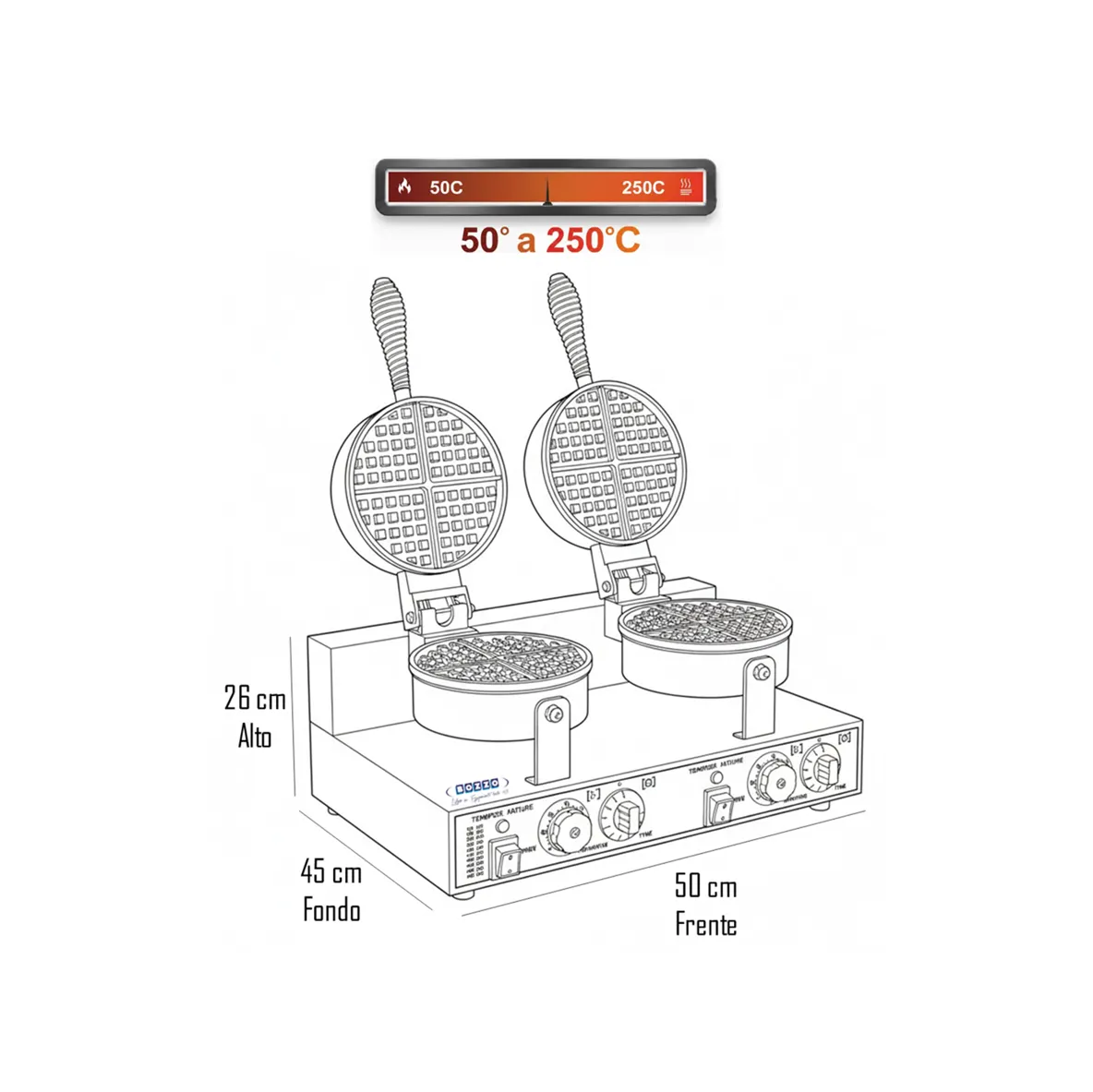 Duplique su Producción: Waflera Profesional 2 Platos – Bozzo.